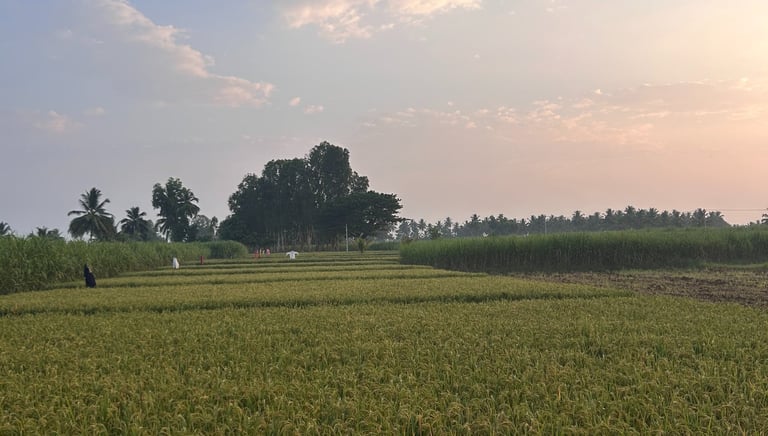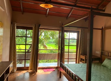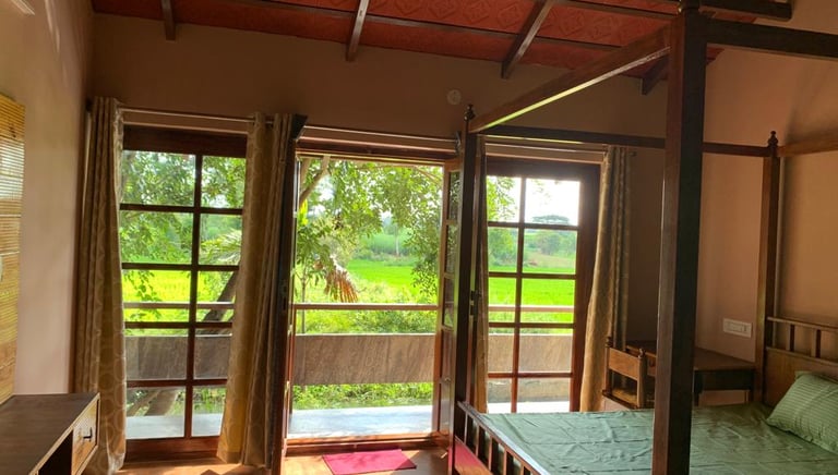 A peaceful homestay surrounded by lush paddy and sugarcane fields in Mandya